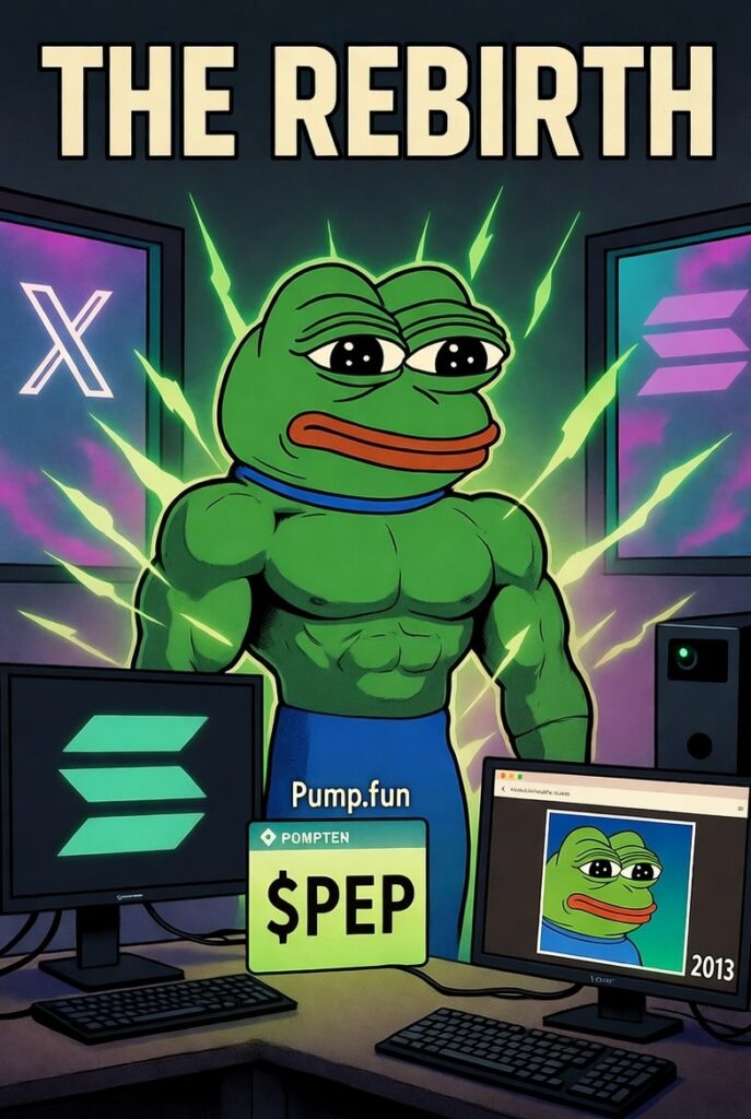 With Pump.fun and Solana, rebuilds the original $PEP — open, transparent, and owned by the community. The original domain and Twitter rise again. The legend of Pepecoin is reborn.